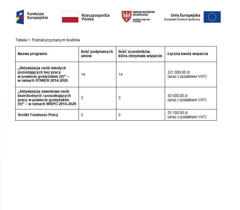 jest współfinansowany ze środków Europejskiego Funduszu Społecznego w ramach Wielkopolskiego Regionalnego Programu Operacyjnego na lata 2014-2020, Oś priorytetowa 6. Rynek pracy, Działanie 6.1 Aktywizacja zawodowa osób bezrobotnych i poszukujących pracy - projekty pozakonkursowe realizowane przez PSZ
