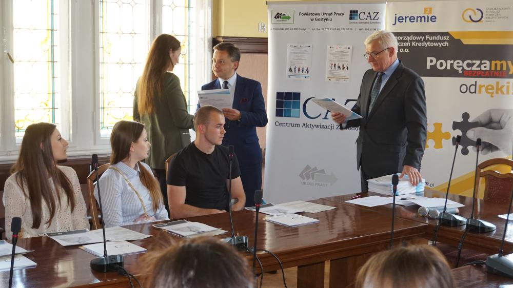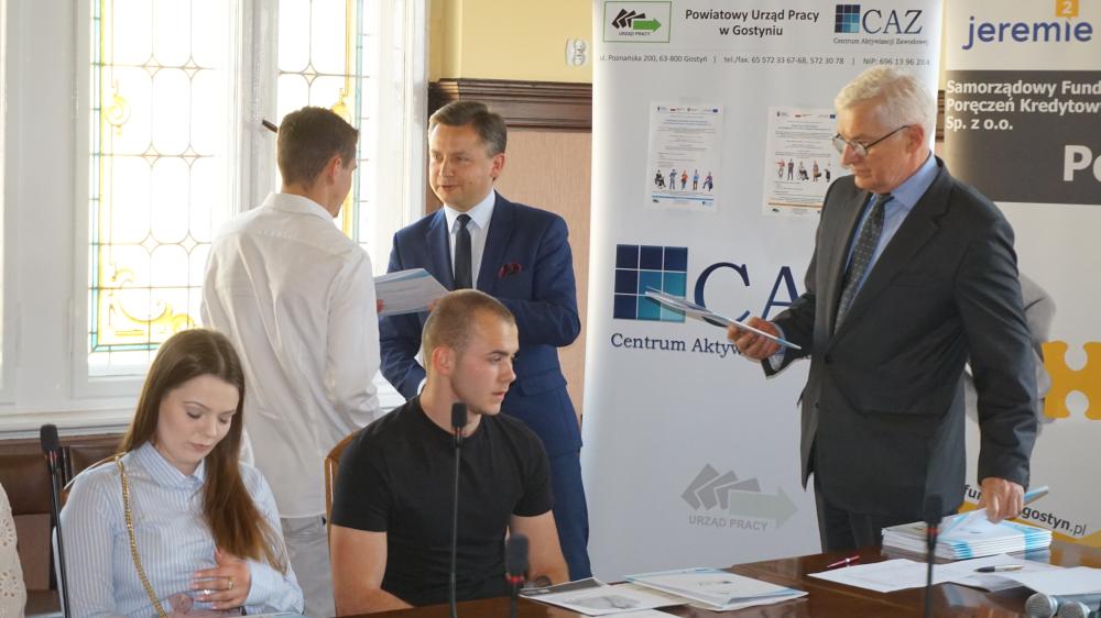 Na oficjalnym spotkaniu w siedzibie Starostwa Powiatowego w Gostyniu w dniu 26 kwietnia 2019 r. dziewiętnaście osób otrzymało z rąk Starosty Gostyńskiego Roberta Marcinkowskiego i Zastępcy Dyrektora Powiatowego Urzędu Pracy w Gostyniu Andrzeja Czupryńskiego podpisane umowy, które stanowią gwarancję przyznanych środków finansowych na dobry początek własnych działalności gospodarczych. Wśród nowo powstających firm dominuje branża usługowa. Klienci będą mogli korzystać m.in. z działalności specjalizujących się w usługach ogólnobudowlanych, fotograficznych, związanych z oprogramowaniem, projektowaniem, a nawet detektywistycznych.