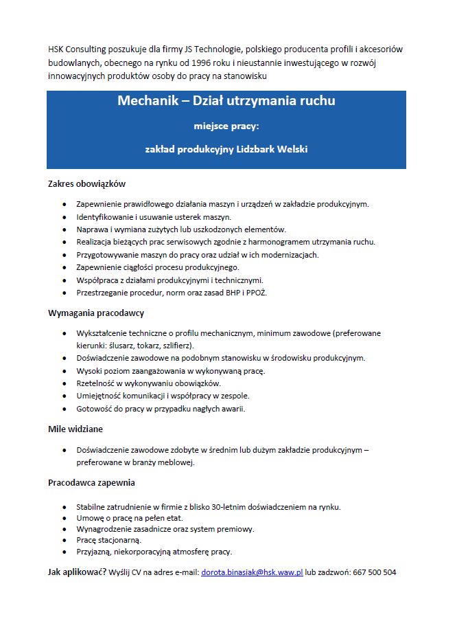 Oferta pracy HSK Consulting Sp. z o. o. - Powiatowy Urząd Pracy w Działdowie