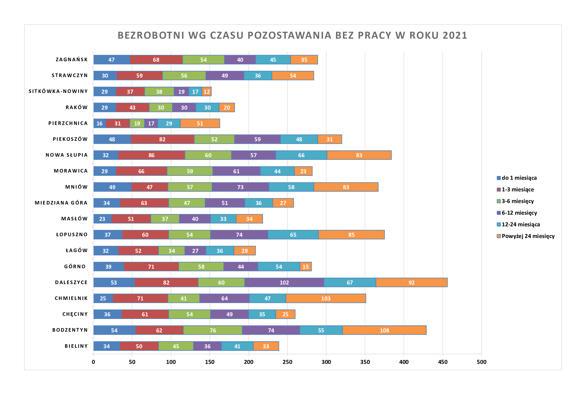 Statystyki - Stan bezrobocia w gminach 2021 - Powiatowy Urząd Pracy w Kielcach