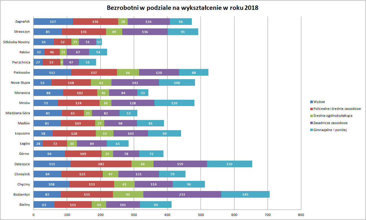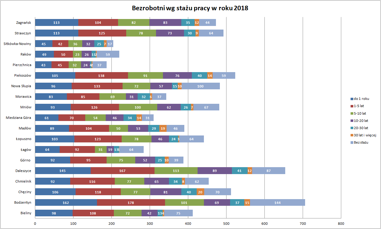 Statystyki - Stan bezrobocia w gminach 2018 - Powiatowy Urząd Pracy w Kielcach